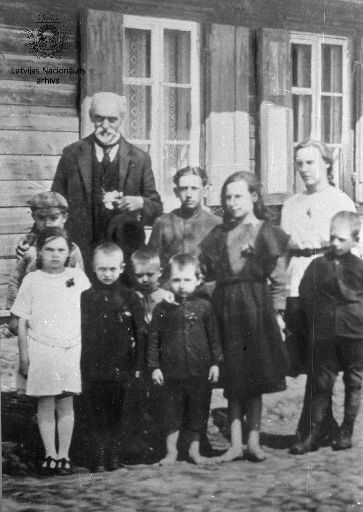 Dzejnieks, dramaturgs, sabiedriskais darbinieks Rainis kopā ar bērniem Rūjienā.