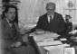 Dailes teātra režisors un aktieris Eduards Smiļģis un dzejnieks, dramaturgs, sabiedriskais darbinieks Rainis pie rakstāmgalda.