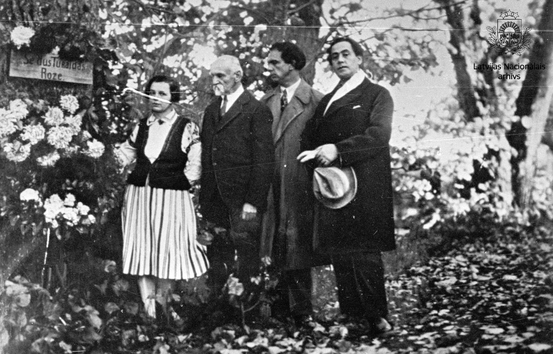 Rainis un Dailes teātra pārstāvji pie Turaidas Rozes kapa Siguldā