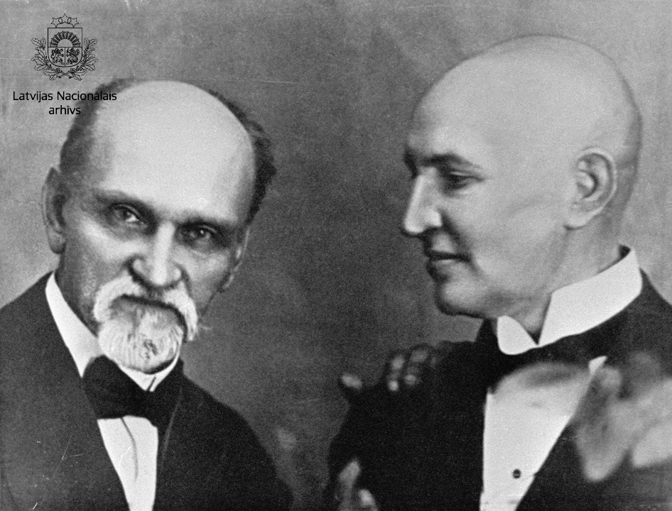 Rainis un Nacionālā teātra aktieris Aleksis Mierlauks.