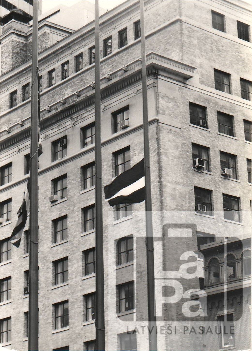 Baltiešu pretpadomju demonstrācija 50. gadadienā kopš Molotova-Ribentropa pakta pieņemšanas. 1989. gada 23. augustā Bostonā pie pilsētas valdes. Karogi pusmastā.
