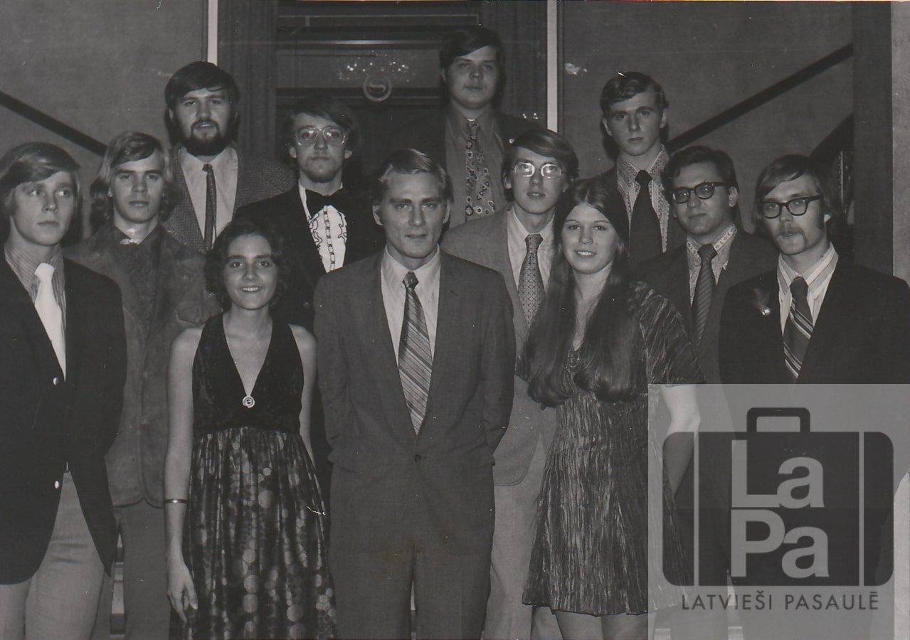 Jaunievēlēta Amerikas Latviešu jaunatnes apvienības valde 1971. gadā Klīvlendā, ASV. Vidū apvienības priekšsēdētājs Mārtiņš Zandbergs