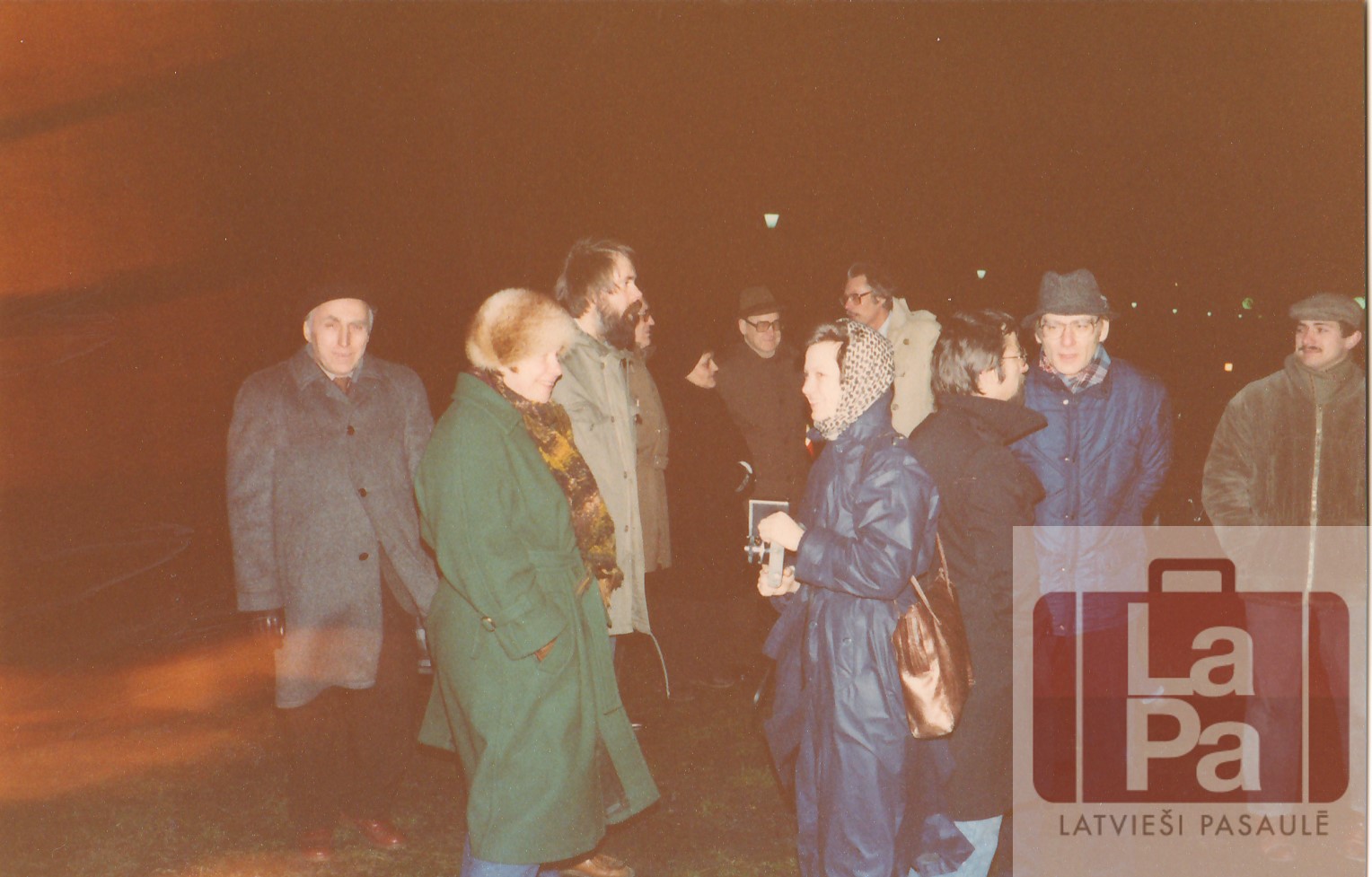 Topošā Latviešu centra Minsterē zemes iesvētīšana 1983. gada 29. janvārī. Fotogrāfijas otrā pusē uzraksts: "Mēs stāvam uz 'mūsu' zemes!"