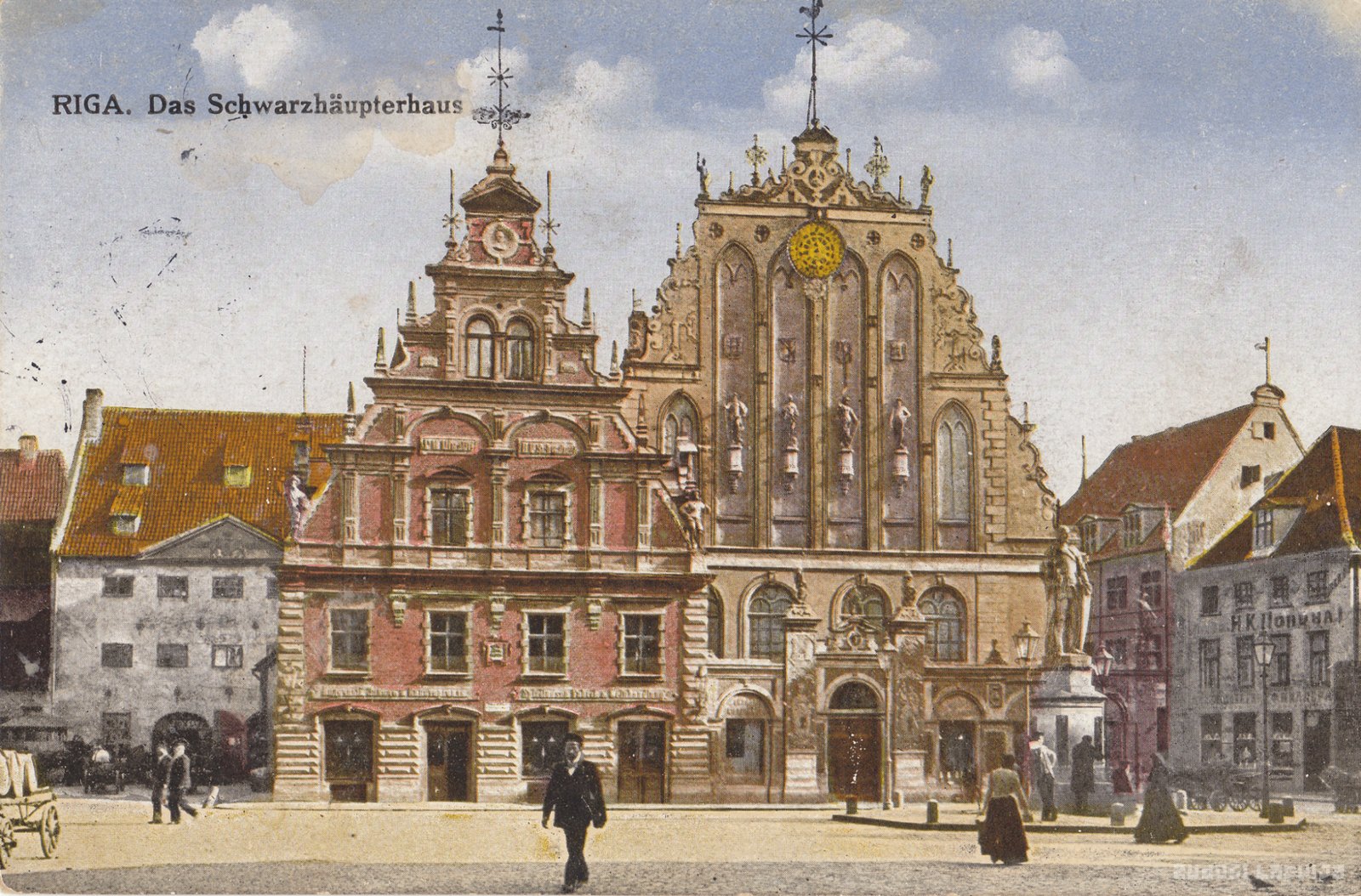 Melngalvju nams, sākumā saukts par Jauno namu, celts 1334. gadā. Tas vairākkārt pārbūvēts, sākot ar 1522. gadu, kad pie ieejas tika uzstādīti piedurvju akmeņi līdz pat 19. gadsimta beigām, kad virs nama ieejas parādījās lauvu figūras un piebūves stūrī svētā Jura atveids. Rolanda skulptūra, viduslaiku Hanzas brīvpilsētu simbols, Rātslaukumā uzstādīta 1896. gadā, tagad atrodas Svētā Pētera baznīcā, bet laukumā apskatāma 2000. gadā izgatavotā kopija. Nams celts kā sanāksmju un dzīru vieta dažādām Rīgas sabiedriskajām organizācijām, 17. gadsimtā par tā vienīgajiem iemītniekiem kļuva dzīvespriecīgo un uzņēmīgo ārzemju, galvenokārt vācu, tirgotāju brālība – Melngalvju biedrība. Viens no daudzajiem biedrības aizbildņiem bija svētais Maurīcijs, romiešu leģiona komandieris, miris mocekļa nāvē – viņam nocirsta galva, tāpēc mora galvas atveids kļuva par melngalvju pazīšanas zīmi un simbolu, to attēloja arī biedrības ģerbonī. Par krāšņāko Rīgas rotu dēvētā celtne, tāpat kā rātsnams, Otrā pasaules kara laikā pārvērtās drupās. Pēckara gados nenorima interese par Melngalvju namu - tā atjaunošanai tika izstrādāti vairāki projekti. 1991. gadā Svētā Pētera baznīcā tika sarīkota piemiņas izstāde, veltīta Melngalvju namam un biedrībai. 1992. gadā aizsākās arheoloģiskie izrakumi nama vietā, bet 1995. gadā gadā iznāca apjomīgs izdevums par Melngalvju namu un biedrību, tad arī tika uzsākta nama celtniecība. Kopš 1999. gada Rīga atkal lepojas ar atdzimušo celtni. Ir piepildījies vēlējums, kas reiz bijis ierakstīts nama vārtos: Ja man kādreiz sagrūt būs, mani atkal celiet jūs!