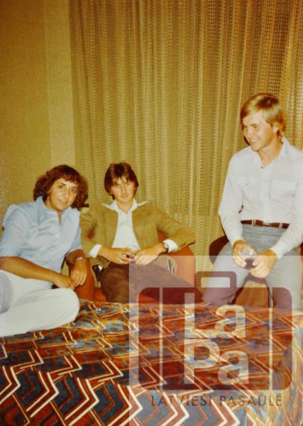 Hamiltonas Daugavas Vanagu tautas deju kopas "Vainadziņš" dejotāji pirms 3. Latviešu jaunatnes Dziesmu svētku balles Monreālā, 1979. gadā. No kreisās: Daina Bitmane, Andris Pulciņš, Pēteris Grīnbergs.