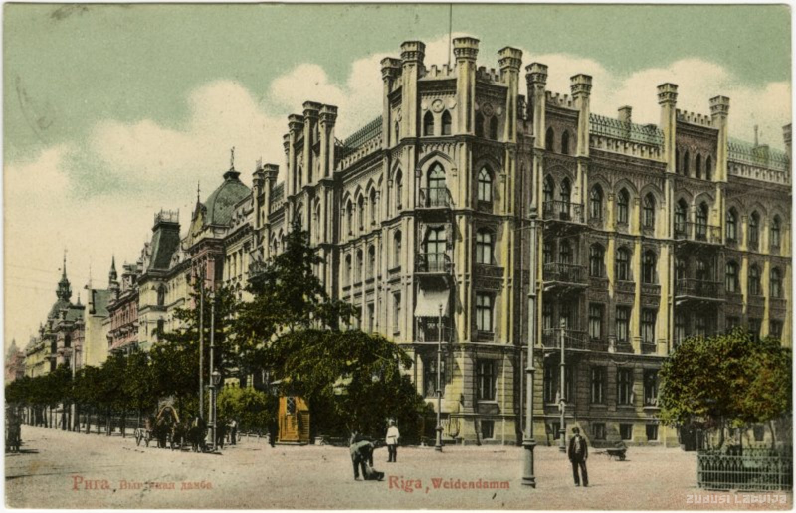 Priekšplānā nams Elizabetes ielā Nr. 21. Namu cēlis Krievijas Kara flotes atvaļināts kapteinis leitnants Edmunds Barons Tīzenhauzens pēc inženiera arhitekta Edmunda fon Trompovska 1883. gadā apstiprināta projekta