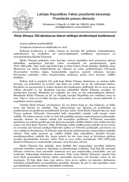 Kārļa Ulmaņa 125.dzimšanas dienai veltītajai zinātniskajai konferencei