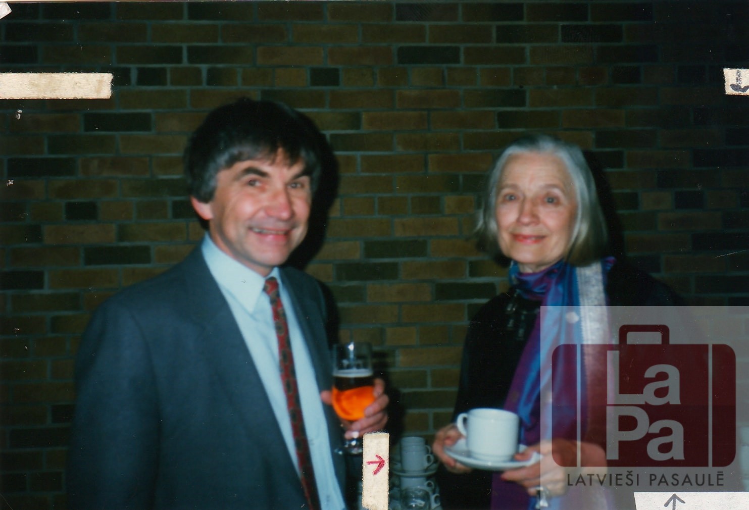 Žurnāla "Jaunā Gaita" redaktors Laimonis Zandbergs un dzejniece Velta Toma 1987. gada 5. aprīlī Toronto, Veto-Retro, Toronto Latviešu centrā.