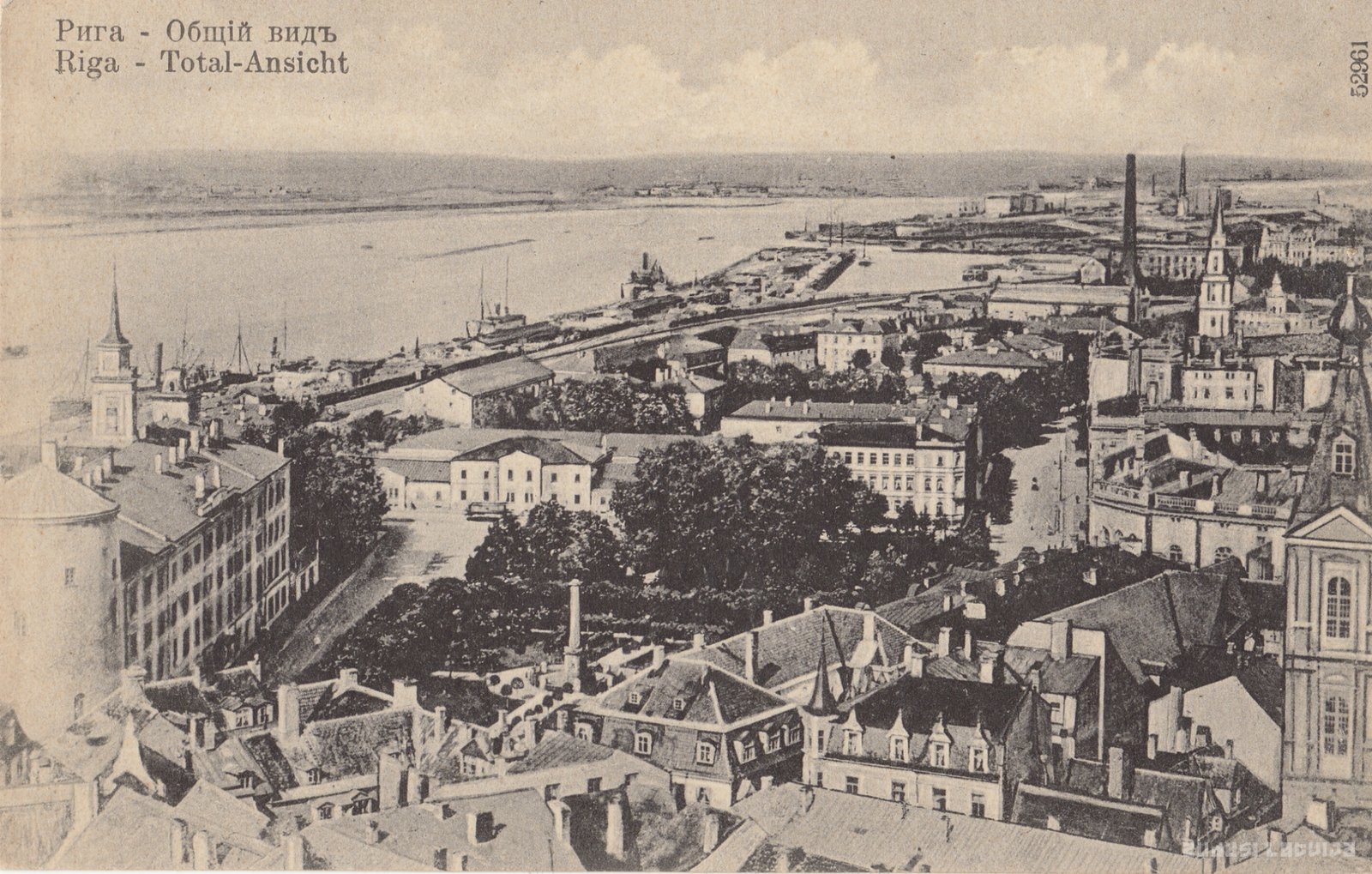 Frontālajā pusē uzraksts: Рига. Общiй видь.Riga. Total-Ansicht