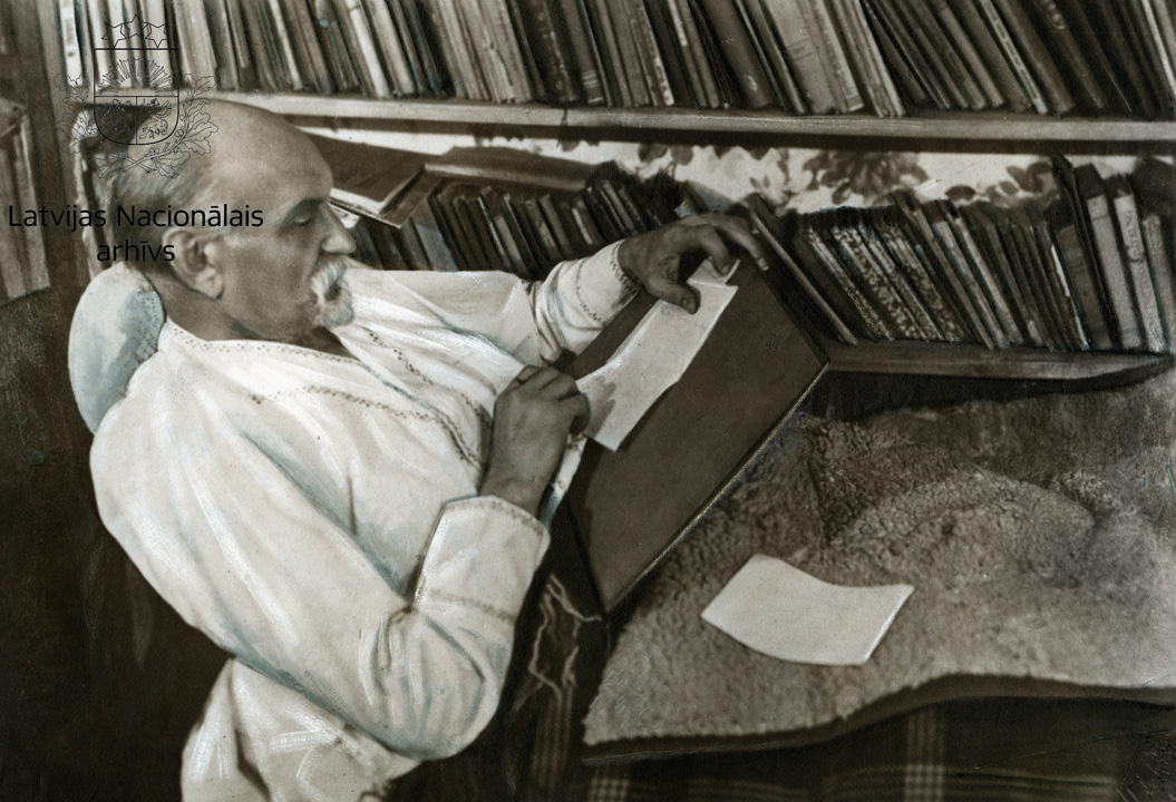 Rainis raksta Baznīcas ielas dzīvoklī Rīgā.