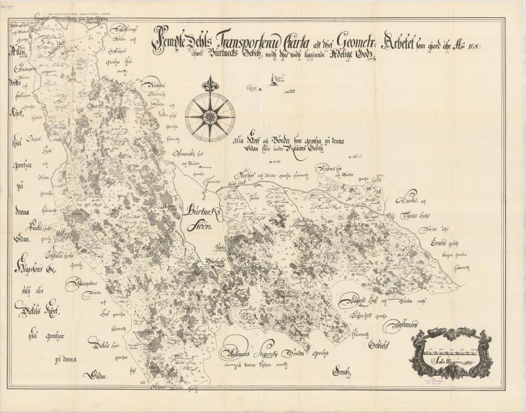 Femyte dehls transporterad Charta aff dhet geometr. Arbetet som giord ähr A 1681 öfwer Burtnecks gebith medh dhess wedh ligiande adelige gods