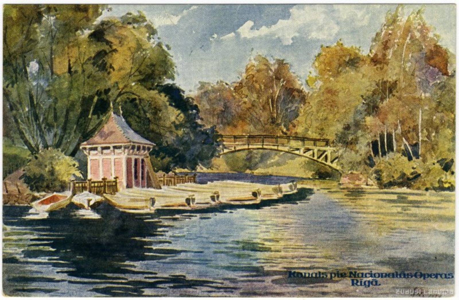 E.Volfeila akvarelis "Kanāls pie Nacionālās operas Rīgā"