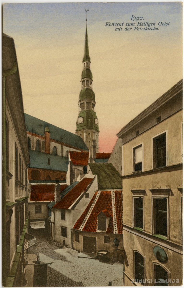 Svētā Gara konventa sētas vietā 13. gadsimtā atradusies Zobenbrāļu ordeņa Sv. Jura pils, ko 13. gadsimta beigās rīdzinieki nopostījuši. Uz sagrautās pils vietu 14., 15. gadsimtu mijā pārcēla pilsētas labdarības iestādi - Svētā Gara konventu, kas darbojās līdz 20. gadsimta sākumam. Līdz 20. gadsimta 30. gadiem tur vēl pastāvēja pilsētas sieviešu nespējnieču patversme un Kampenhauzena vācu nespējnieču patversme. Daļa ēku bija iznomātas noliktavu (Baltā baloža, Zilā baloža, Brūnā baloža u.c.) un darbnīcu vajadzībām, t. sk. arī bijusī Sv. Jura baznīca, kas celta 1208. gadā kā ordeņa pils kapela, kopš 16. gadsimta vidus izmantota saimnieciskos nolūkos, 17. gadsimtā ievērojami pārbūvēta