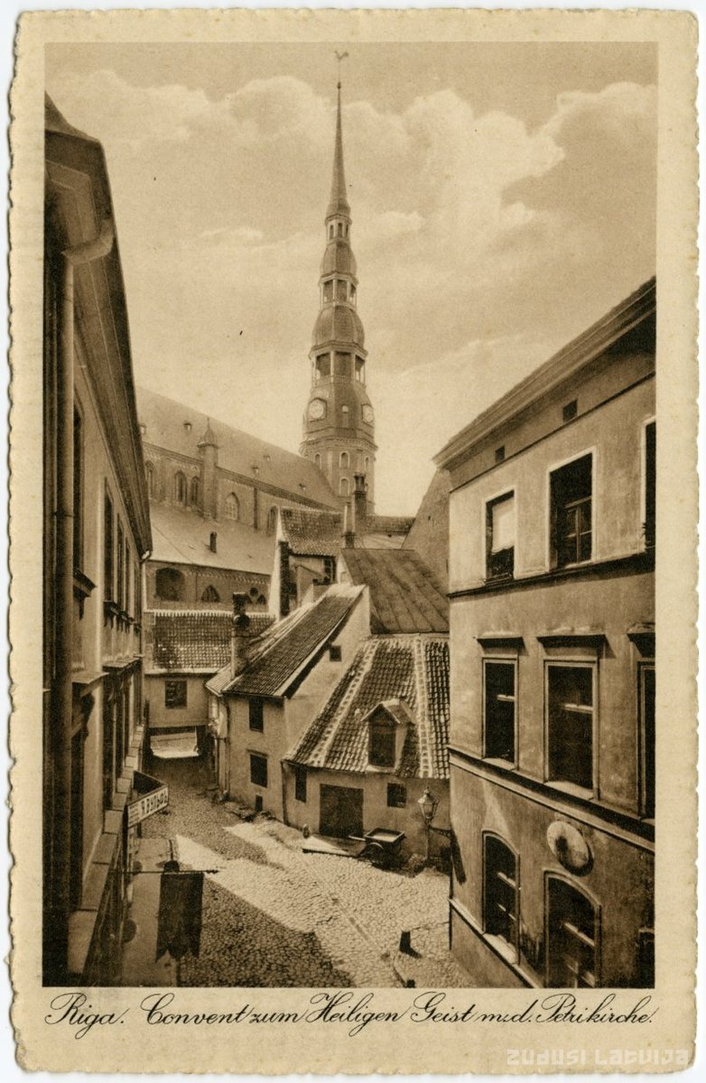 Svētā Gara konventa sētas vietā 13. gadsimtā atradusies Zobenbrāļu ordeņa Sv. Jura pils, ko 13. gadsimta beigās rīdzinieki nopostījuši. Uz sagrautās pils vietu 14., 15. gadsimtu mijā pārcēla pilsētas labdarības iestādi - Svētā Gara konventu, kas darbojās līdz 20. gadsimta sākumam. Līdz 20. gadsimta 30. gadiem tur vēl pastāvēja pilsētas sieviešu nespējnieču patversme un Kampenhauzena vācu nespējnieču patversme. Daļa ēku bija iznomātas noliktavu (Baltā baloža, Zilā baloža, Brūnā baloža u.c.) un darbnīcu vajadzībām, t. sk. arī bijusī Sv. Jura baznīca, kas celta 1208. gadā kā ordeņa pils kapela, kopš 16. gadsimta vidus izmantota saimnieciskos nolūkos, 17. gadsimtā ievērojami pārbūvēta