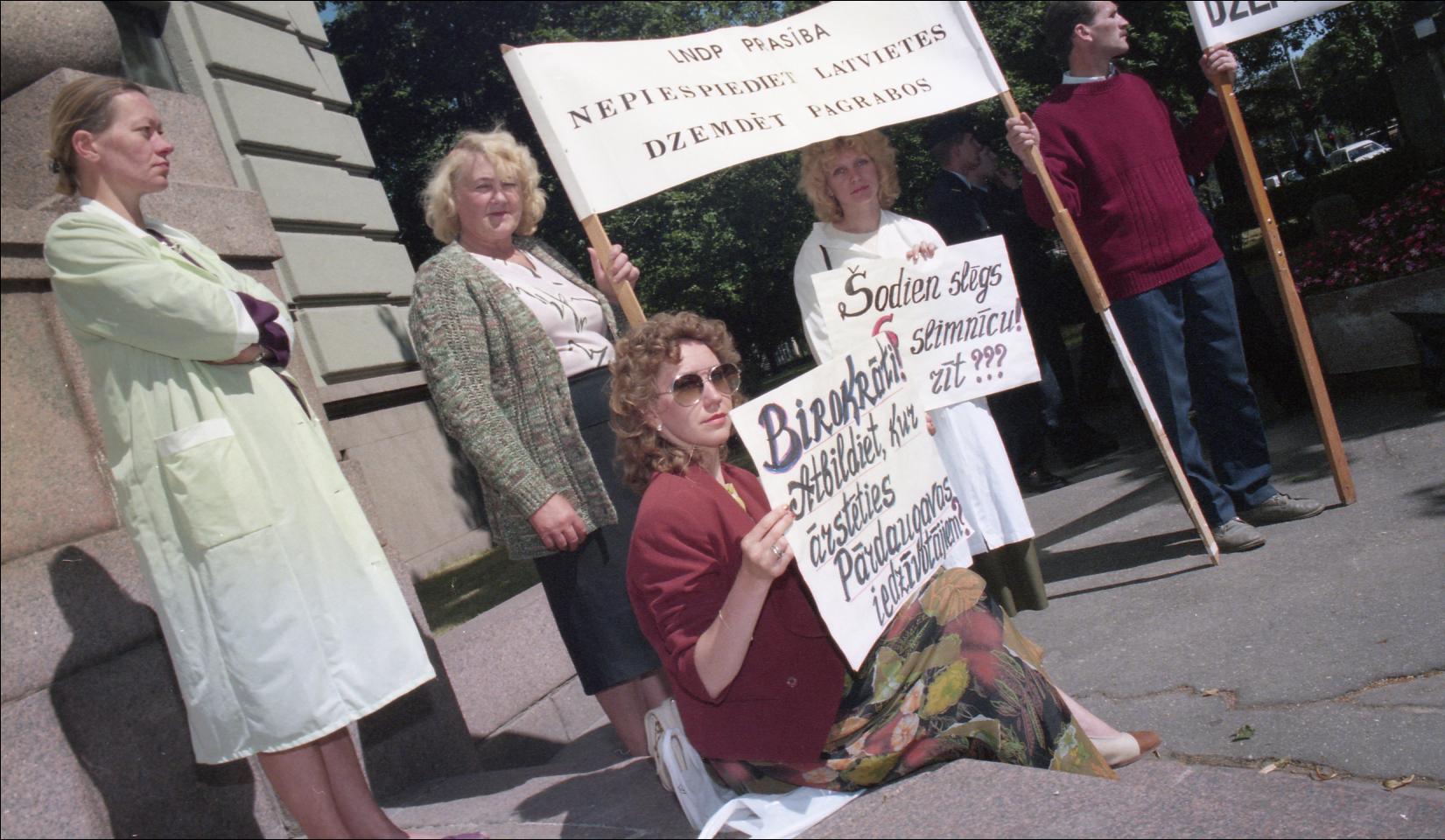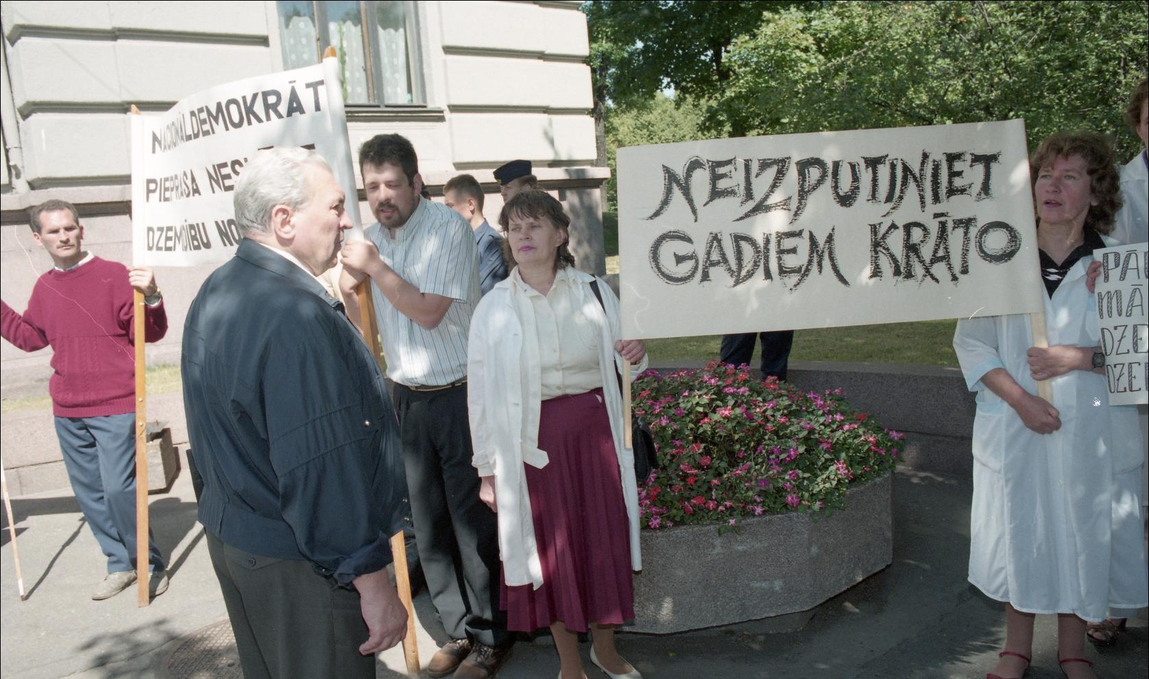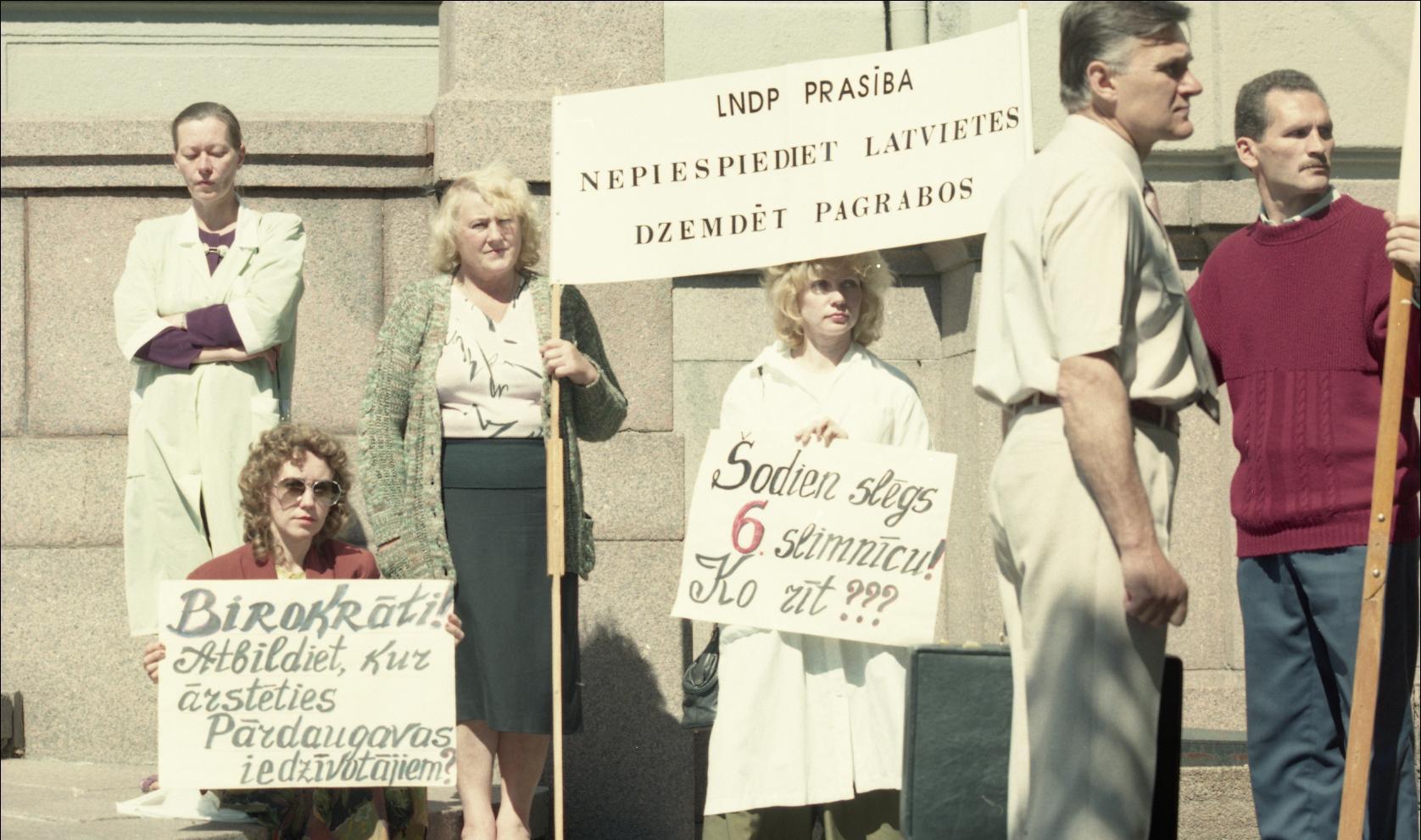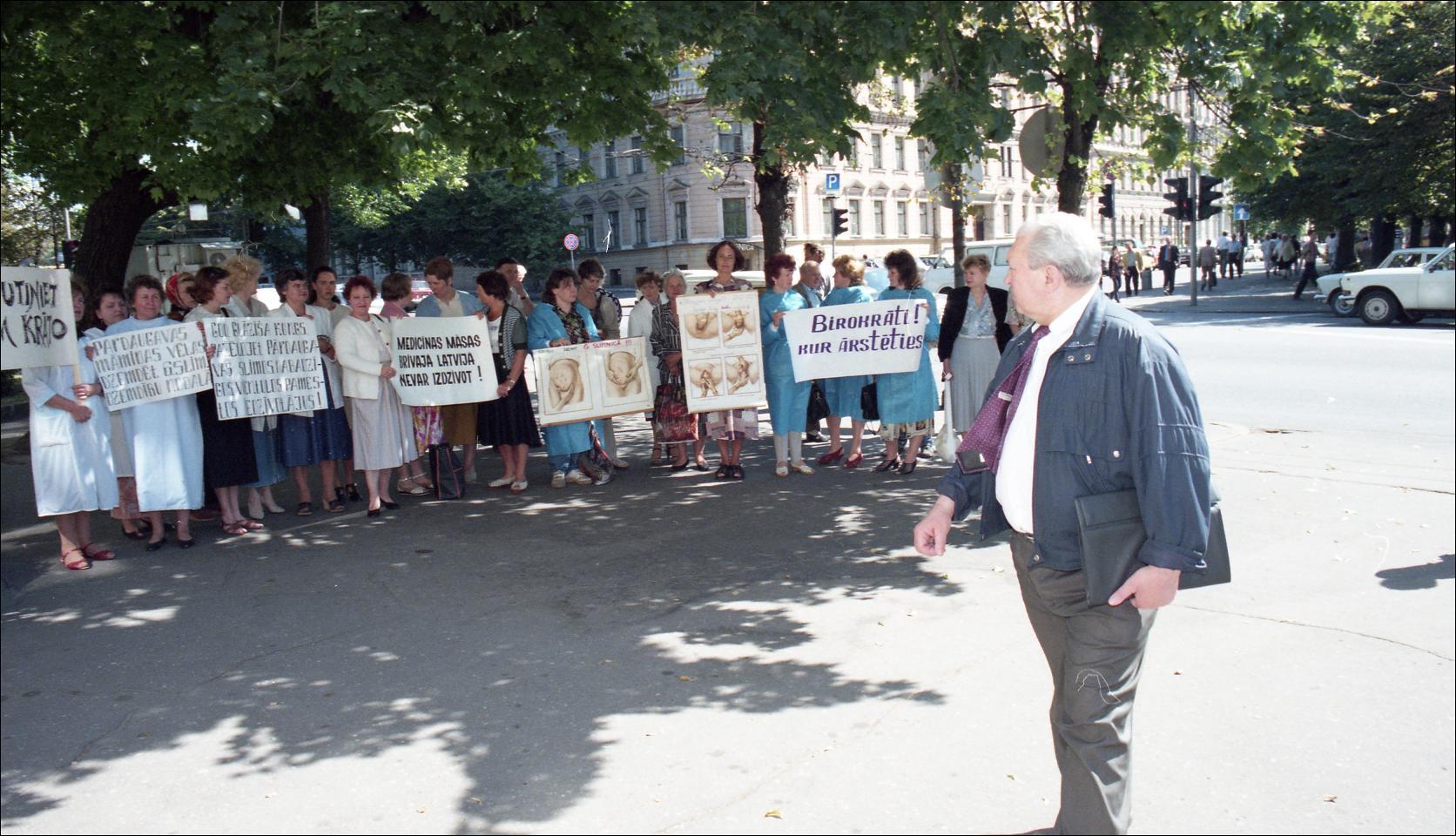 Rīgas 6. Slimnīcas mediķu pikets pie Rīgas Domes.
