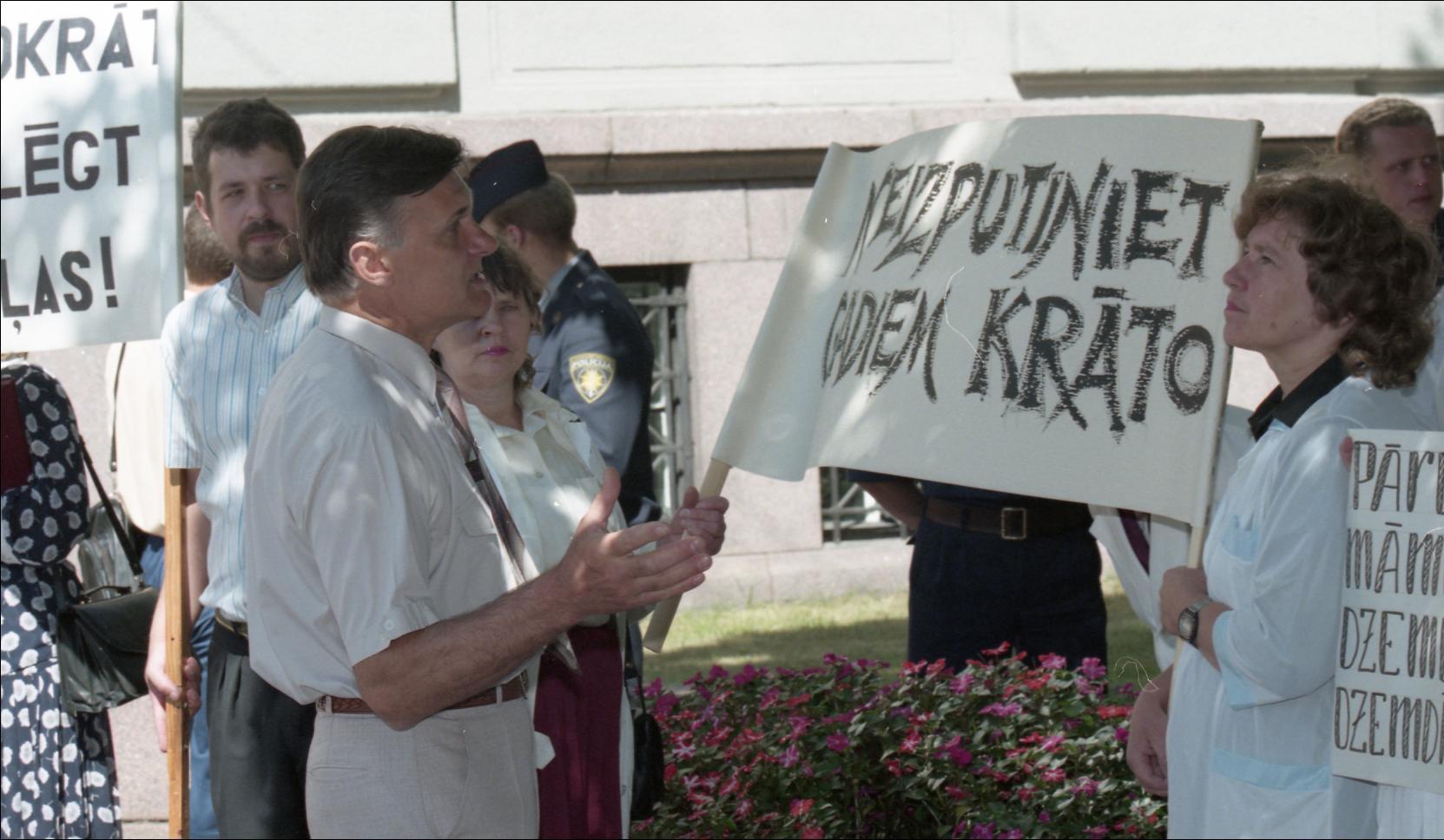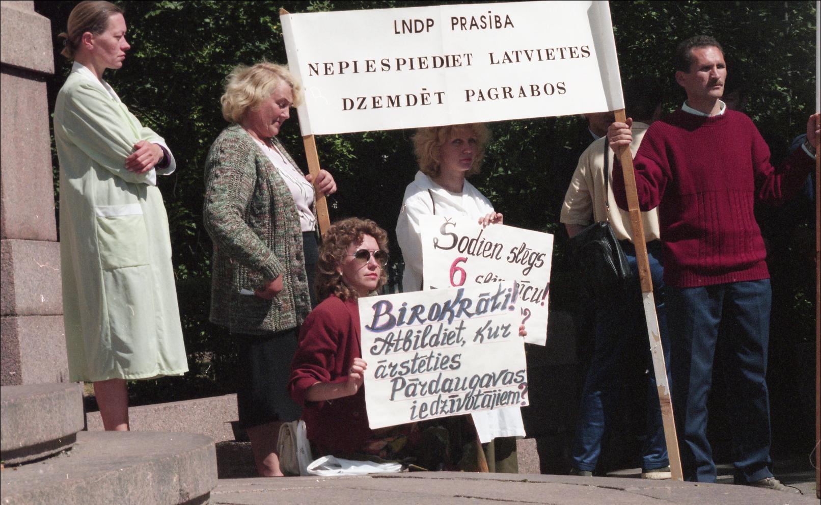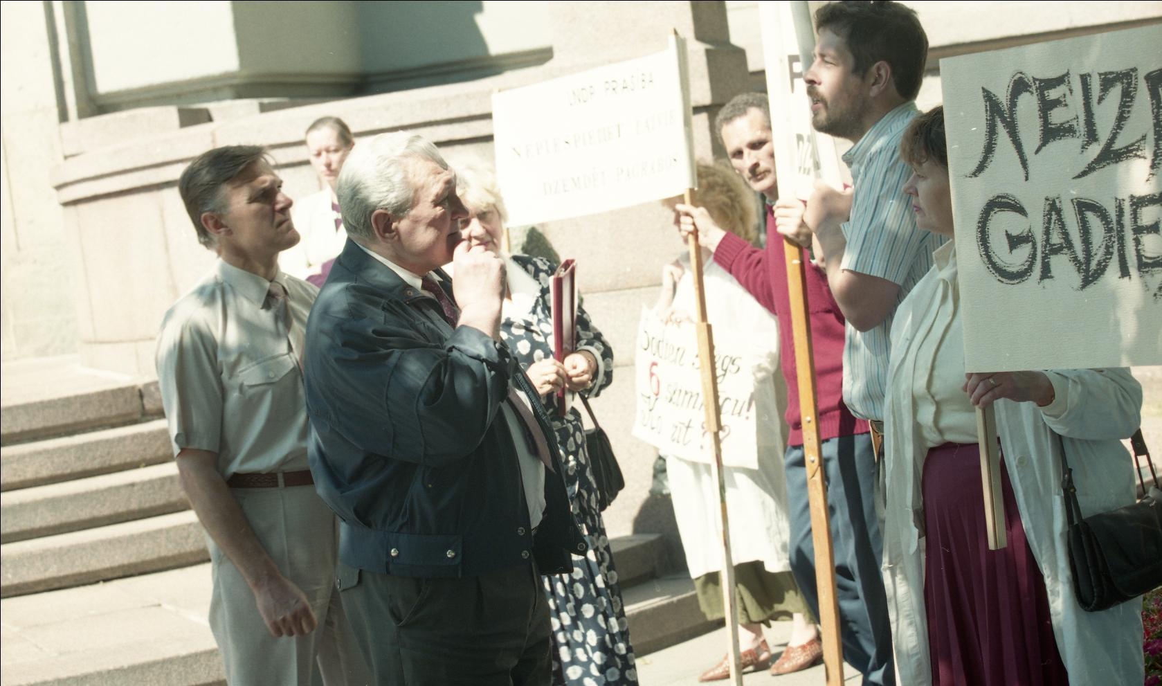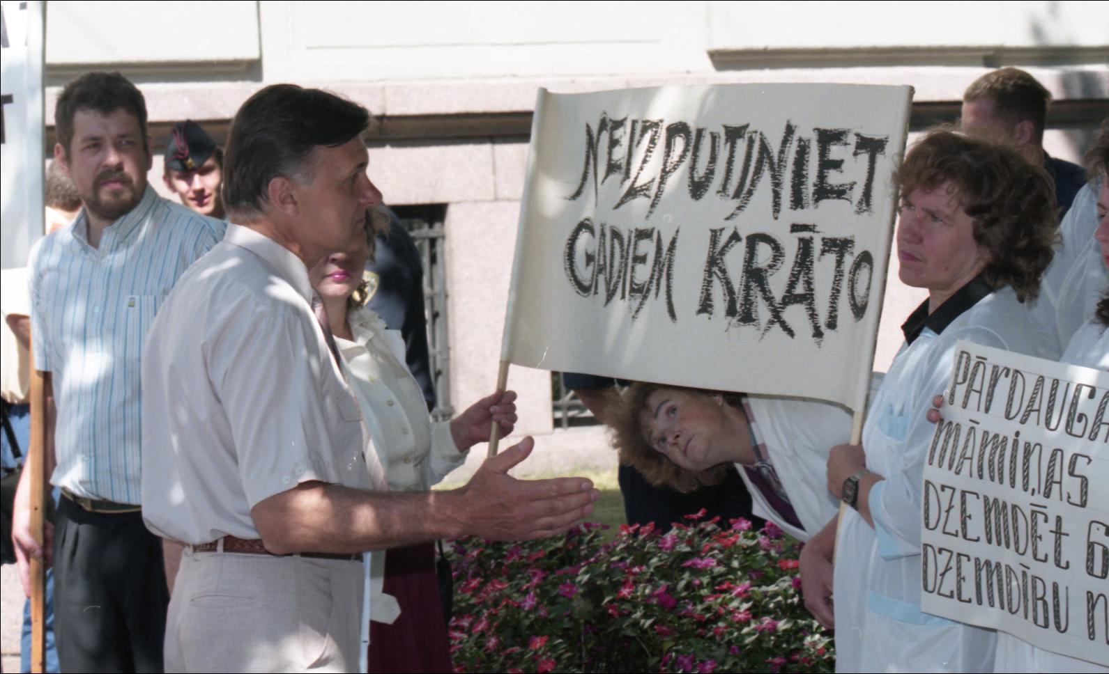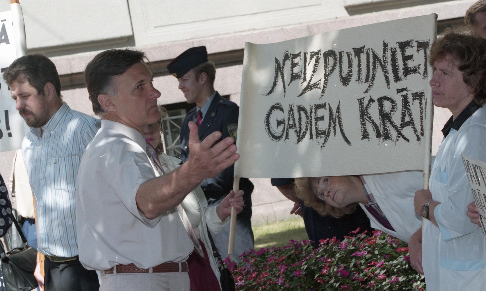 Rīgas 6. Slimnīcas mediķu pikets pie Rīgas Domes.