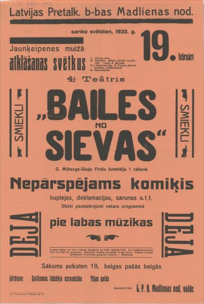 Latvijas Pretalk. B- bas Madlienas nod. sarīko 1933. g. 19. februārī 4)Teātris Bailes no Sievas