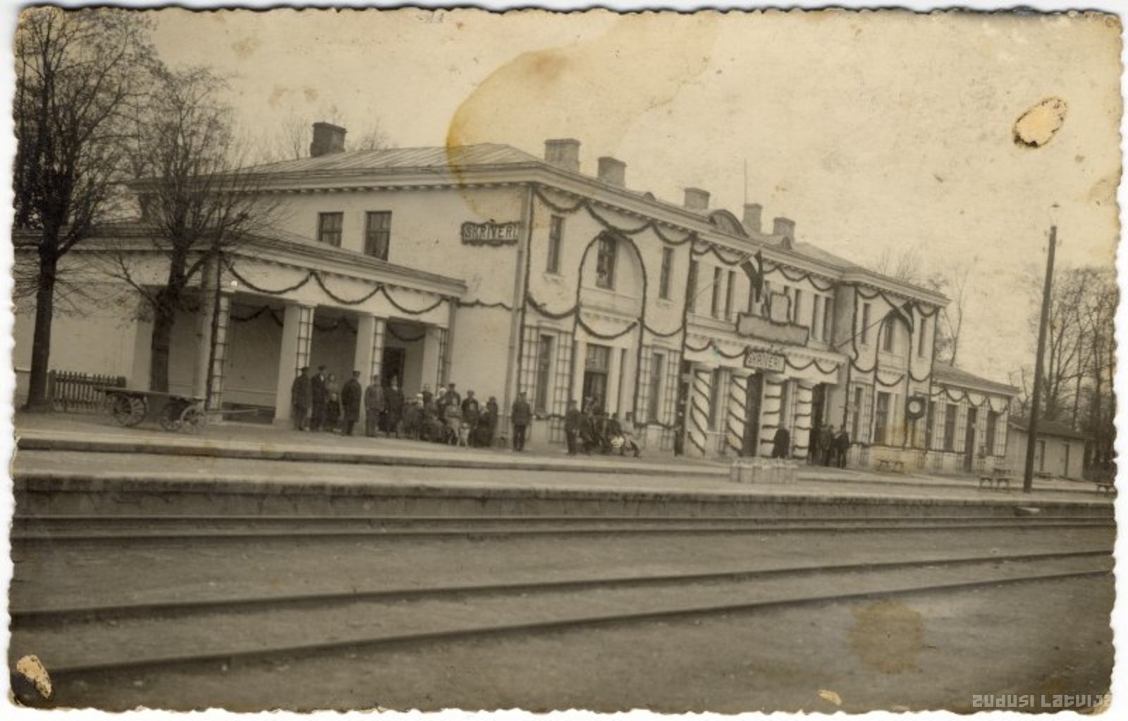Skrīveru stacija (agrākais nosaukums Remershofa) atklāta 1861. gadā uz Rīgas - Daugavpils dzelzceļa līnijas. Stacijā ierīkots plaši izvērsts sliežu ceļu tīkls, lokomotīvju apgriešanās trīstūris un vagonu griezulis. Pirmā pasaules kara gados stacijas ēka nopostīta. 1923. gadā pēc arhitekta J. Neijas projekta uzbūvēta jauna stacijas ēka. Otrā pasaules kara gados stacijas ēka smagi cieta, tās vietā 1951. gadā uzcelta jauna celtne. Stacijas attēls 20. gadsimta 30. gados