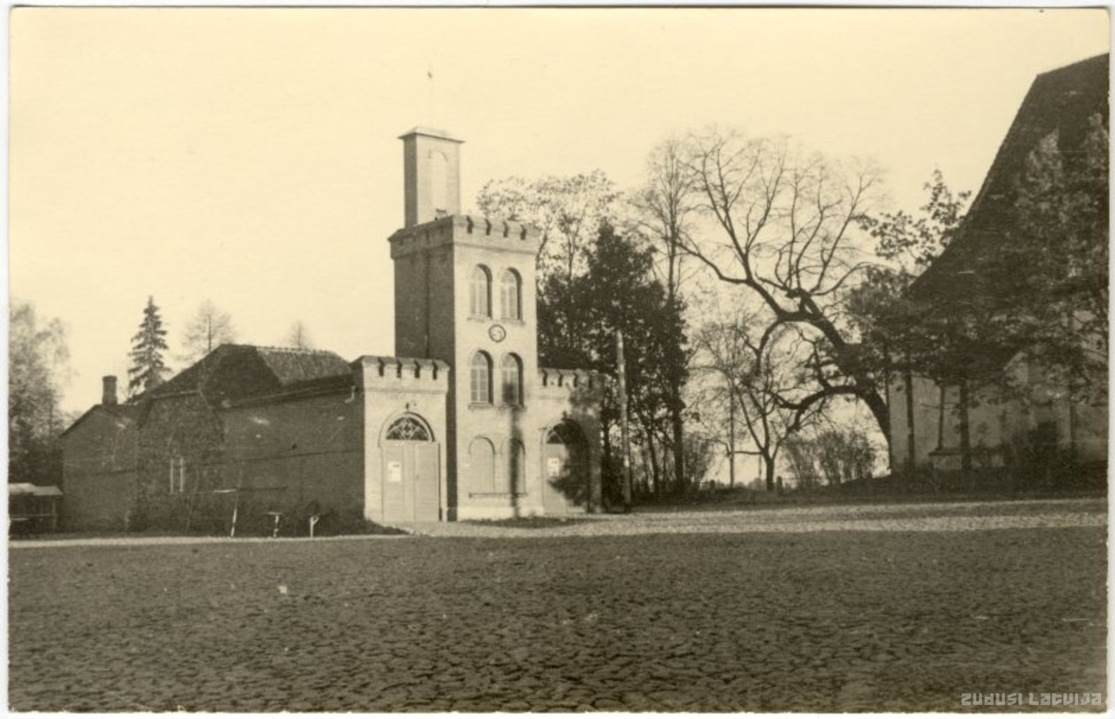 Ugunsdzēsēju tornis celts 20. gadsimta 20. – 30. gados neogotikas stilā. Ēka līdz mūsdienām nav saglabājusies