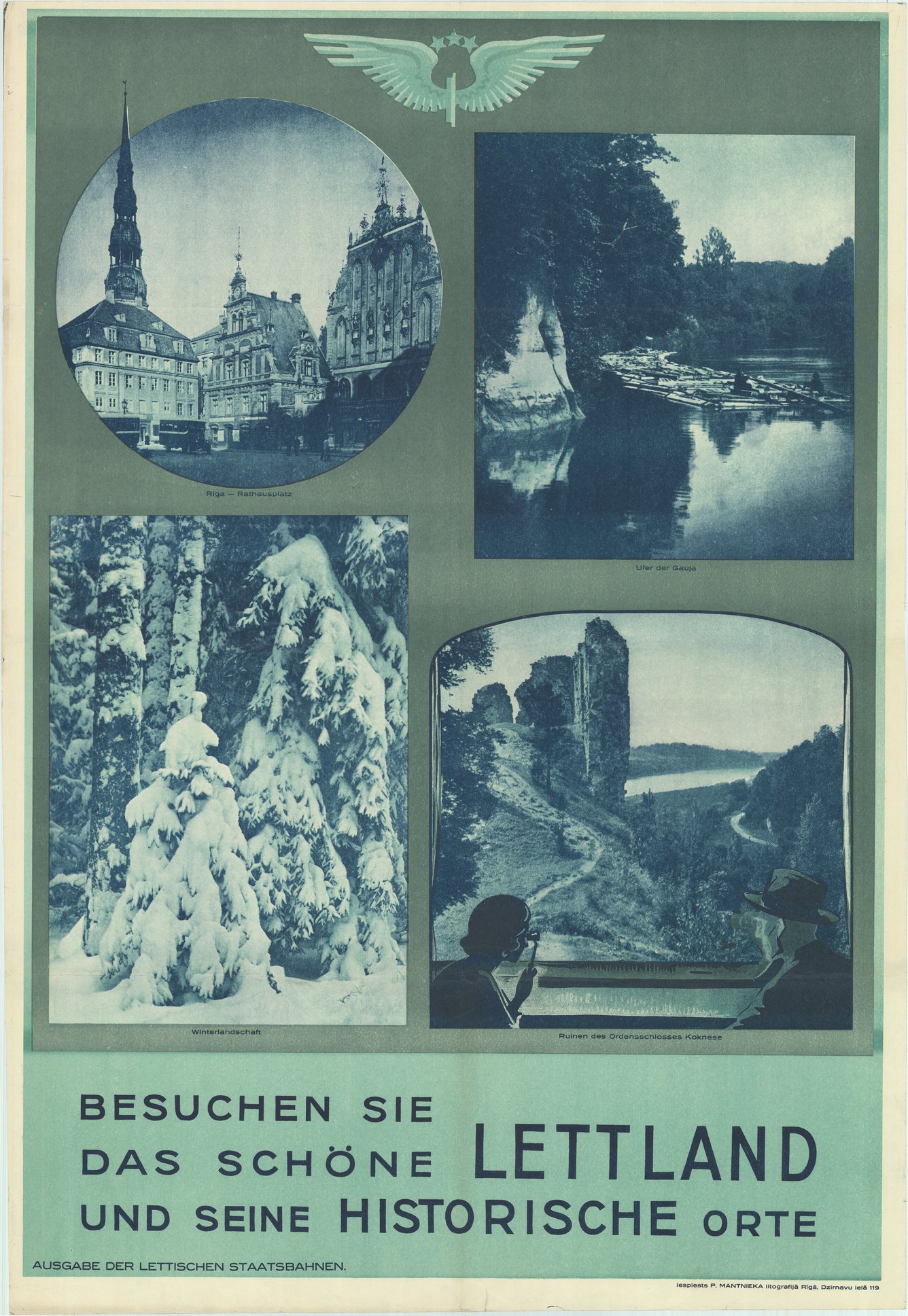 Besuchen Sie das schöne Lettland und seine Historische Orte [attēls]. Riga - Rathausplatz, Ufer der Gauja, Winterlandschaft, Ruinen des Ordensschlosses Koknese