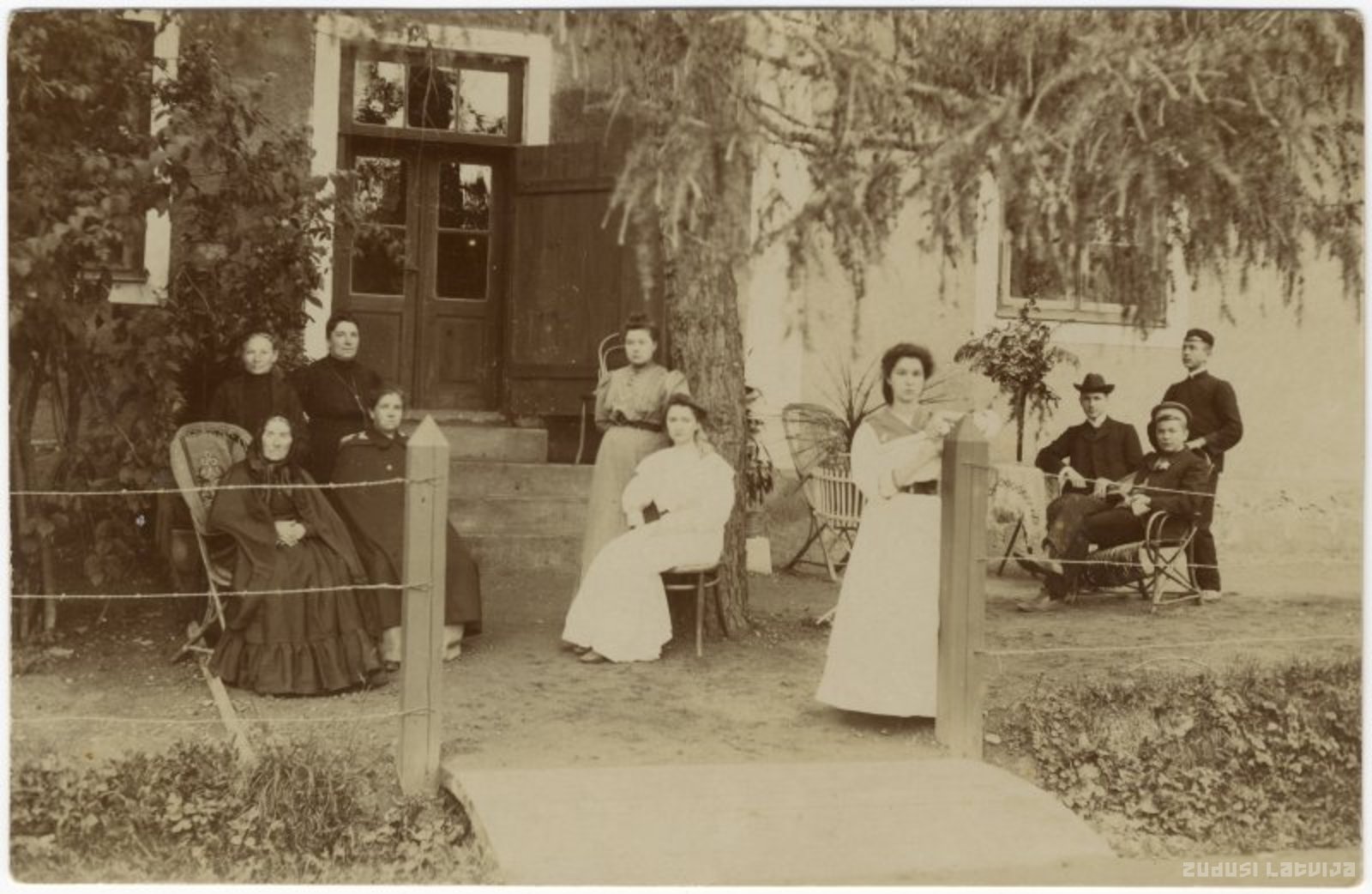 Gulbene. Cilvēki pie dzīvojamās ēkas