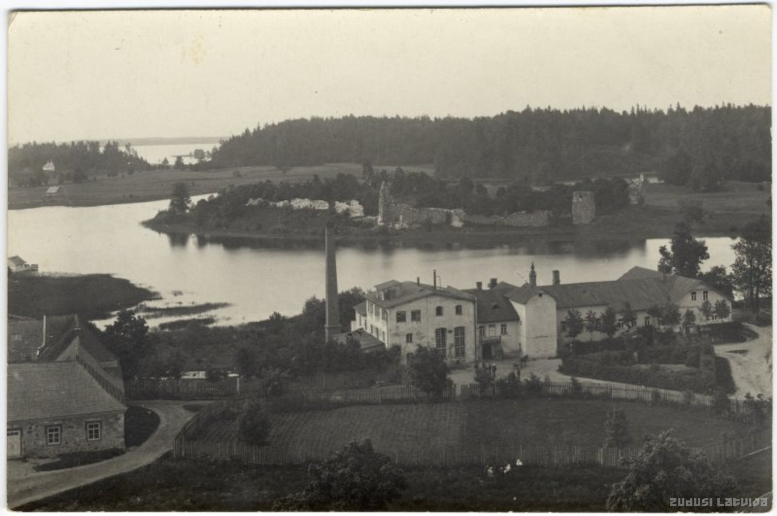 Fotogrāfijā redzams bijušais alusbrūzis, tagad Tautas nams. R. Šlosa uzņēmuma neliels stūris redzams foto kreisajā malā. Tālumā Alūksnes pilssala (Marijas sala)