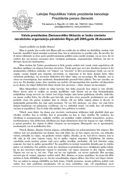 Valsts prezidentes Ziemassvētku tikšanās ar lauku sieviešu nevalstisko organizāciju pārstāvēm Rīgas pilī 2005.gada 28.decembrī