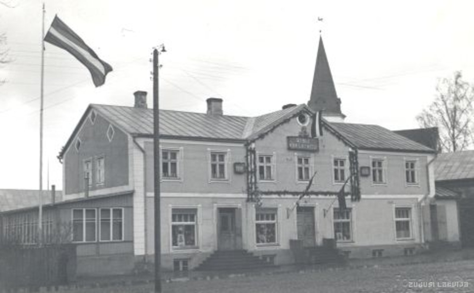 Māzina māja valsts svētku rotā 1938. gadā Smiltenē Gustava Ādolfa laukumā