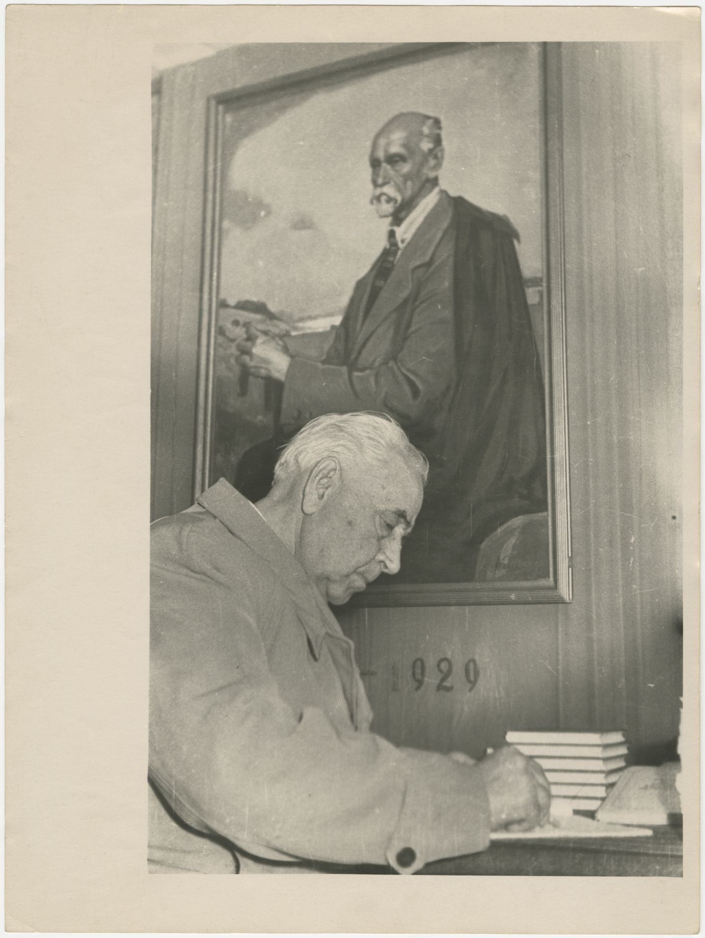 Režisors Eduards Smiļģis parakstās viesu grāmatā Raiņa un Aspazijas memoriālajā vasarnīcā Majoros (tagad Memoriālo muzeju apvienības Raiņa un Aspazijas muzeja Raiņa un Aspazijas vasarnīca Majoros). Fonā mākslinieka Jāņa Roberta Tillberga gleznotais Raiņa portrets.