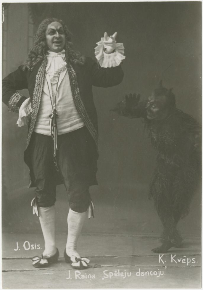 Skats no Raiņa lugas "Spēlēju, dancoju" uzveduma Latvijas Nacionālā teātrī. Kunga lomā Jānis Osis un Velna zēna lomā Konrāds Kvēps. Uzveduma režisors Aleksis Mierlauks, scenogrāfs Jānis Kuga.