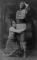 Skats no Raiņa traģēdijas "Indulis un Ārija" pirmiestudējuma Jaunajā Rīgas teātrī. Mirdza Šmithene Vizbulītes lomā un Alfrēds Amtmanis-Briedītis Induļa lomā. Foto apakšējā daļā uzraksts rokrakstā. Uzveduma režisors Alfrēds Amtmanis-Briedītis, scenogrāfs Jānis Kuga.