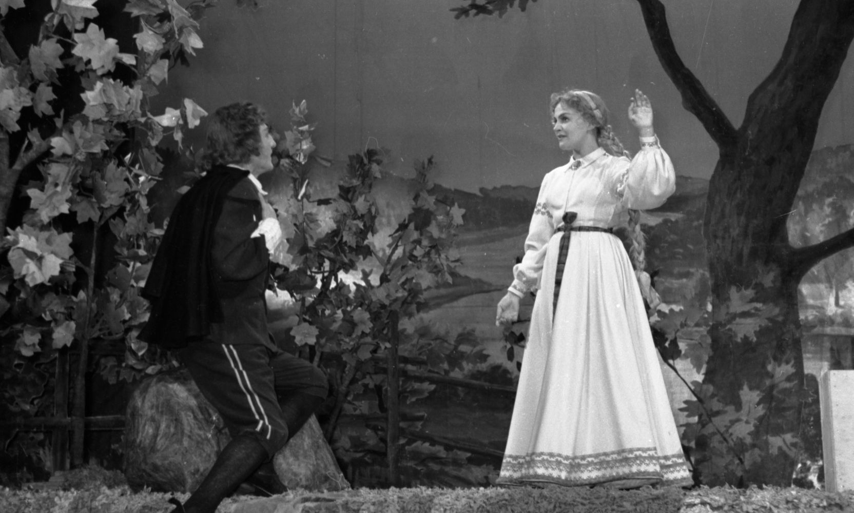 Skats no Raiņa lugas "Mīla stiprāka par nāvi" iestudējuma Latvijas PSR Krievu drāmas teātrī (tagad Mihaila Čehova Rīgas Krievu teātris). Maijas lomā Alla Isajeva, Viktora Heila lomā Nikolajs Krjukovs. Režisors Jurijs Jurovskis.