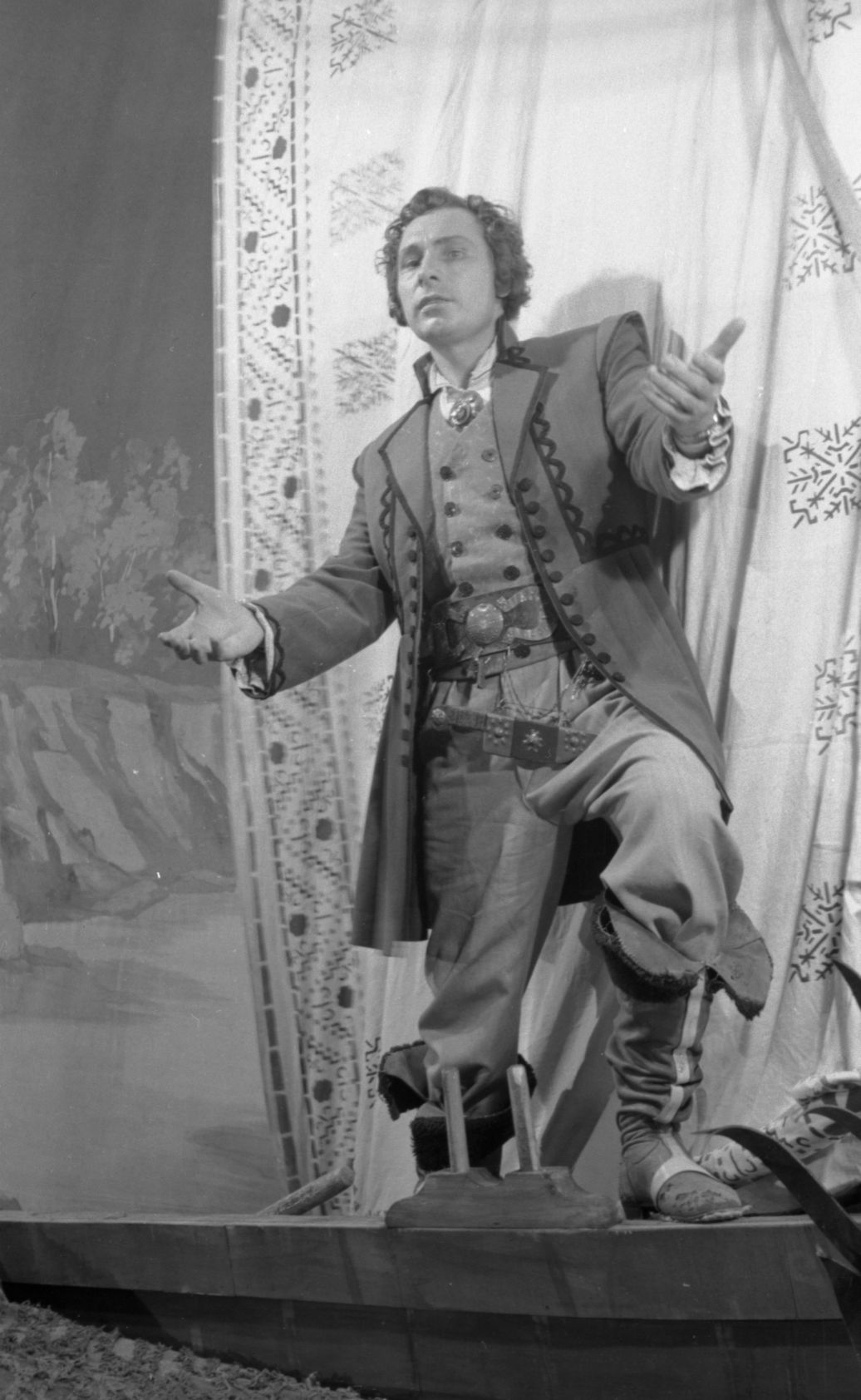 Aktieris Kārlis Valdmanis Ulda lomā Raiņa lugas "Pūt, vējiņi!" iestudējumā Latvijas PSR Valsts Dailes teātrī. Izrādes režisore Felicita Ertnere.