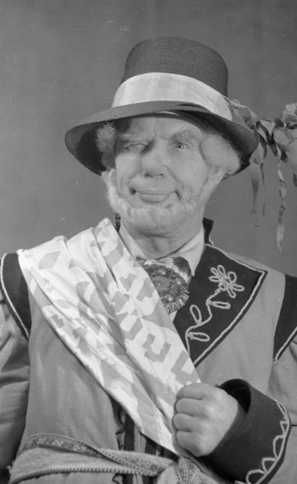 Aktieris Pēteris Vasaraudzis Raiņa lugas "Spēlēju, dancoju" iestudējumā Latvijas PSR Valsts Dailes teātrī. Uzveduma inscenētājs Eduards Smiļģis, režisore Felicita Ertnere, mākslinieks Ģirts Vilks.