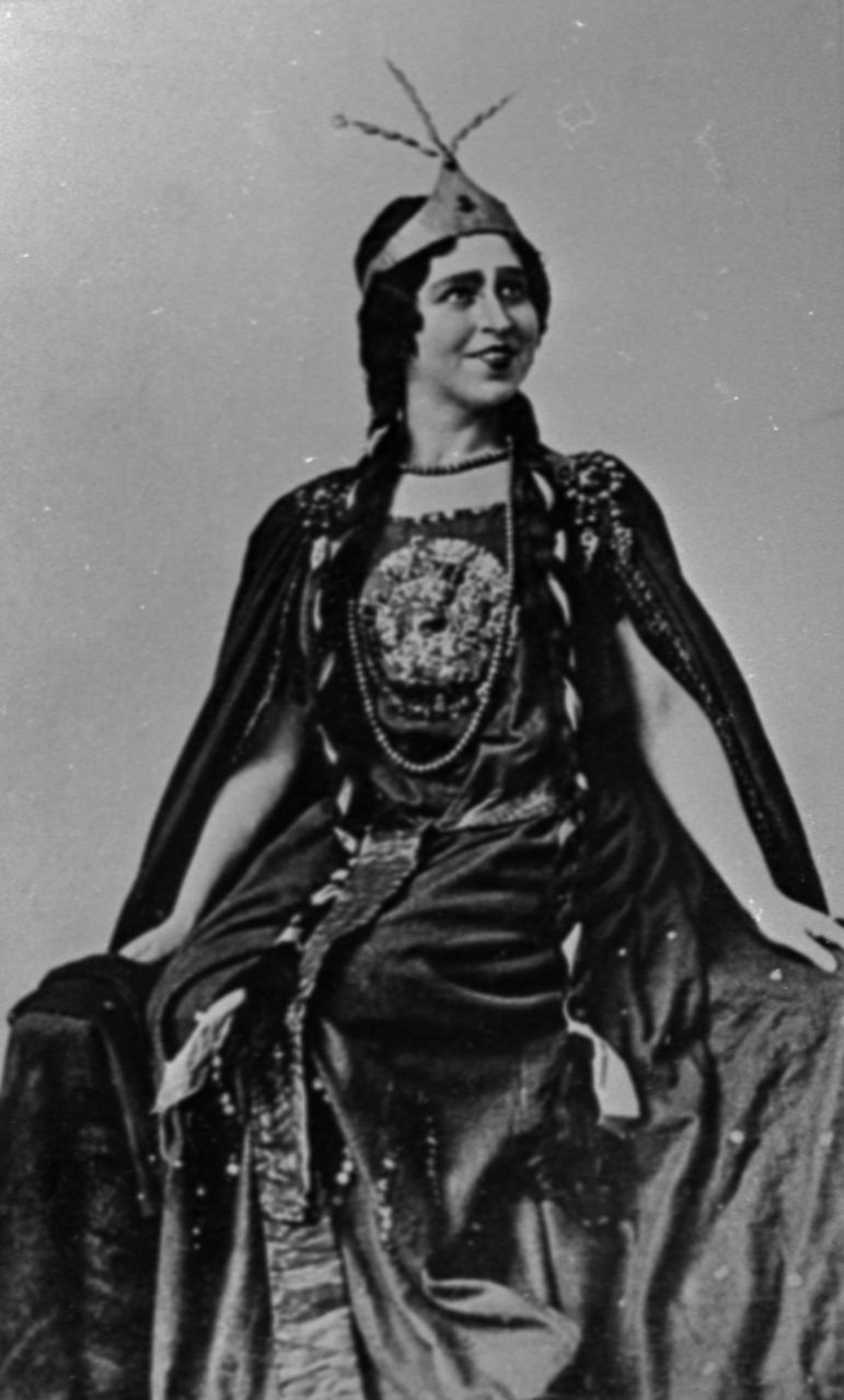 Aktrise Paula Baltābola Spīdolas lomā Raiņa lugas "Uguns un nakts" iestudējumā Dailes teātrī. Uzveduma inscenētājs Eduards Smiļģis, scenogrāfs Jānis Muncis.