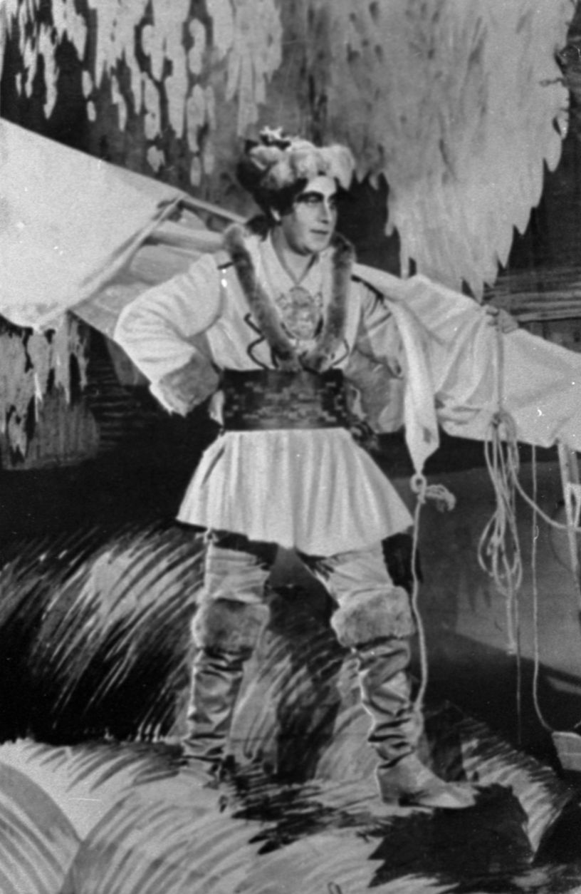 Aktieris Eduards Smiļģis Ulda lomā Raiņa lugas "Pūt, vējiņi!" iestudējumā Dailes teātrī. Izrāde veltīta Raiņa piemiņai, inscenētājs Eduards Smiļģis, scenogrāfs Oto Skulme.