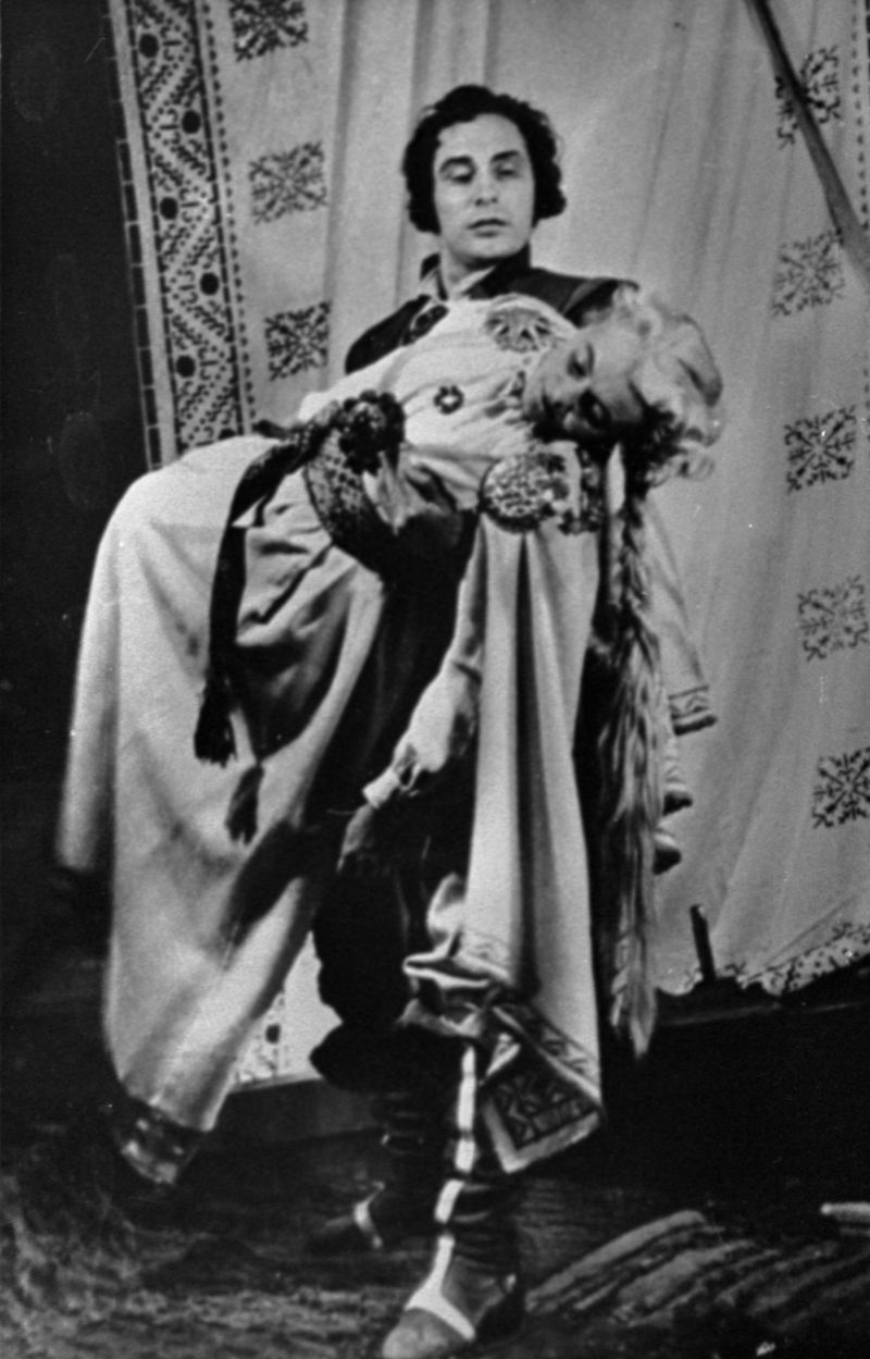 Skats no Raiņa lugas "Pūt, vējiņi!" iestudējuma Latvijas PSR Valsts Dailes teātrī. Baibas lomā aktrise Eiženija Kaldovska, Ulda lomā aktieris Kārlis Valdmanis. Iestudējuma režisore Felicita Ertnere.