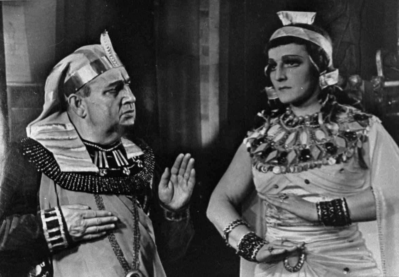 Skats no Raiņa lugas "Jāzeps un viņa brāļi" iestudējuma Latvijas PSR Akadēmiskajā drāmas teātrī. Jānis Osis Potifera lomā un Sigrida Grīsle Asnates lomā. Uzveduma režisors Alfrēds Amtmanis-Briedītis, scenogrāfs Arvīds Spertāls.