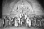 Skats no Raiņa lugas "Uguns un nakts" iestudējuma Dailes teātrī. Uzveduma inscenētājs Eduards Smiļģis, scenogrāfs Jānis Muncis.