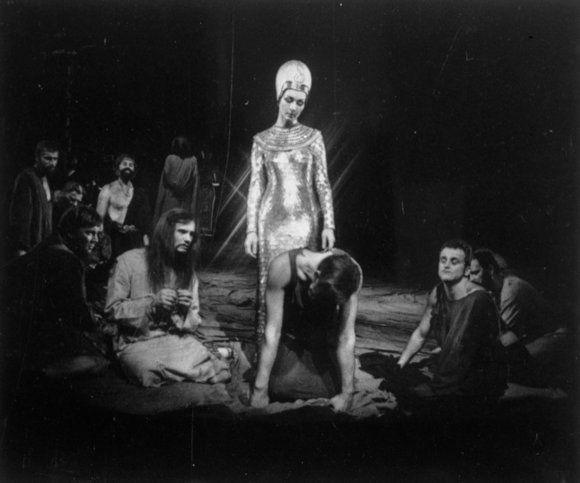 Skats no Raiņa lugas "Jāzeps un viņa brāļi" iestudējuma Latvijas PSR Valsts Akadēmiskajā Dailes teātrī. Asnates lomā aktrise Akvelīna Līvmane. Uzveduma inscenētājs Arnolds Liniņš, režisore Aina Matīsa, scenogrāfs Ilmārs Blumbergs