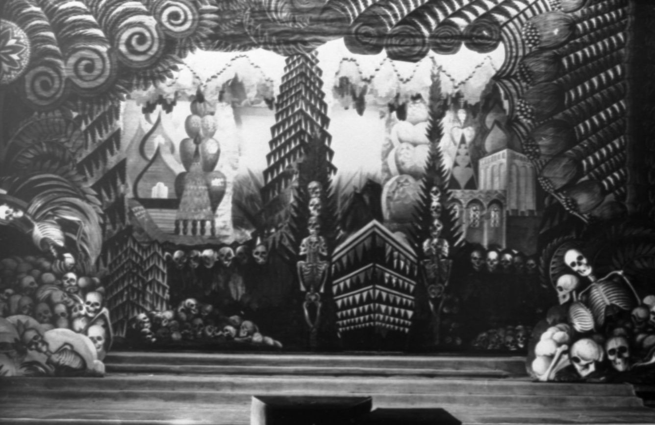 Mākslinieka Ludolfa Liberta dekorācijas Raiņa traģēdijas "Ilja Muromietis" iestudējumam Latvijas Nacionālajā teātrī 1928. gadā.