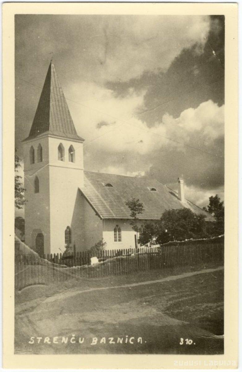 Strenču luterāņu baznīcas koka ēka tika uzcelta 1907. gadā. 1935. gadā baznīca atradās ļoti sliktā stāvoklī, baznīcas tornim pat draudēja sabrukšana. 1936. gadā vecais baznīcas tornis tika nojaukts, un tajā pašā gadā tika ielikts pamatakmens jaunajam tornim. Torņa būvdarbi un baznīcas iekštelpu krāsošana tika pabeigti 1936. gadā. Nākamajā, 1937. gadā, apmeta baznīcas ārsienas un jauno torni, ko tai pašā gadā arī iesvētīja