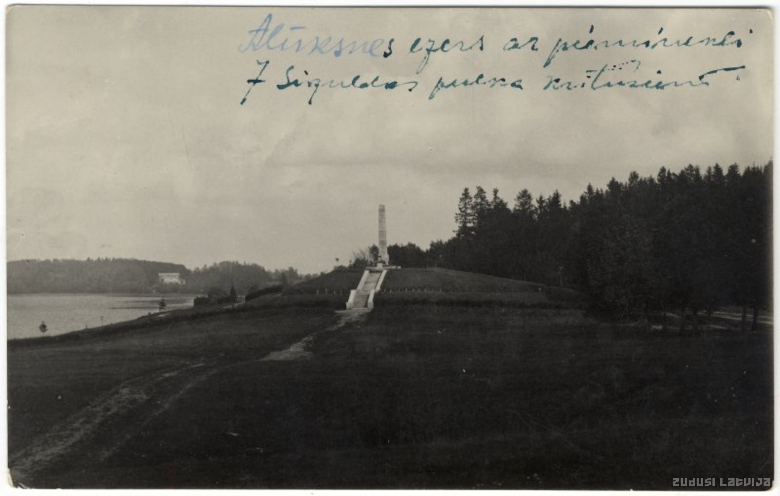 Alūksnes ezers ar pieminekli 7. Siguldas pulka kritušiem