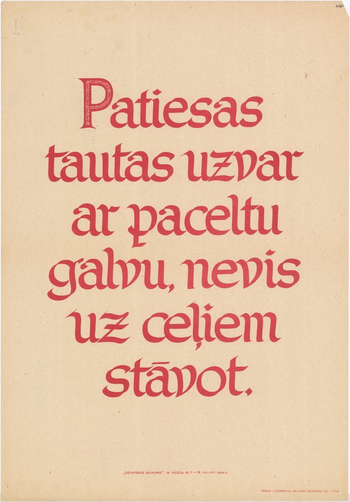 Patiesas tautas uzvar ar paceltu galvu, nevis uz ceļiem stāvot [attēls] / mākslinieks nezināms