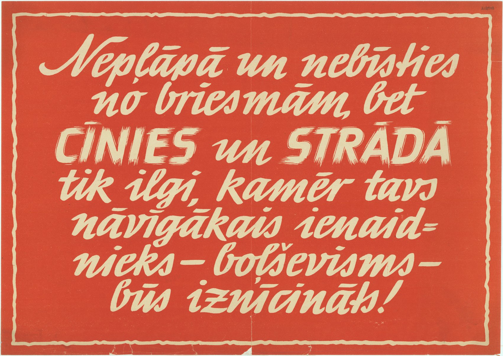 Nepļāpā un nebīsties no briesmām, bet cīnies un strādā tik ilgi, kamēr tavs nāvīgākais ienaidnieks - boļševisms - būs iznīdēts [attēls] / mākslinieks nezināms