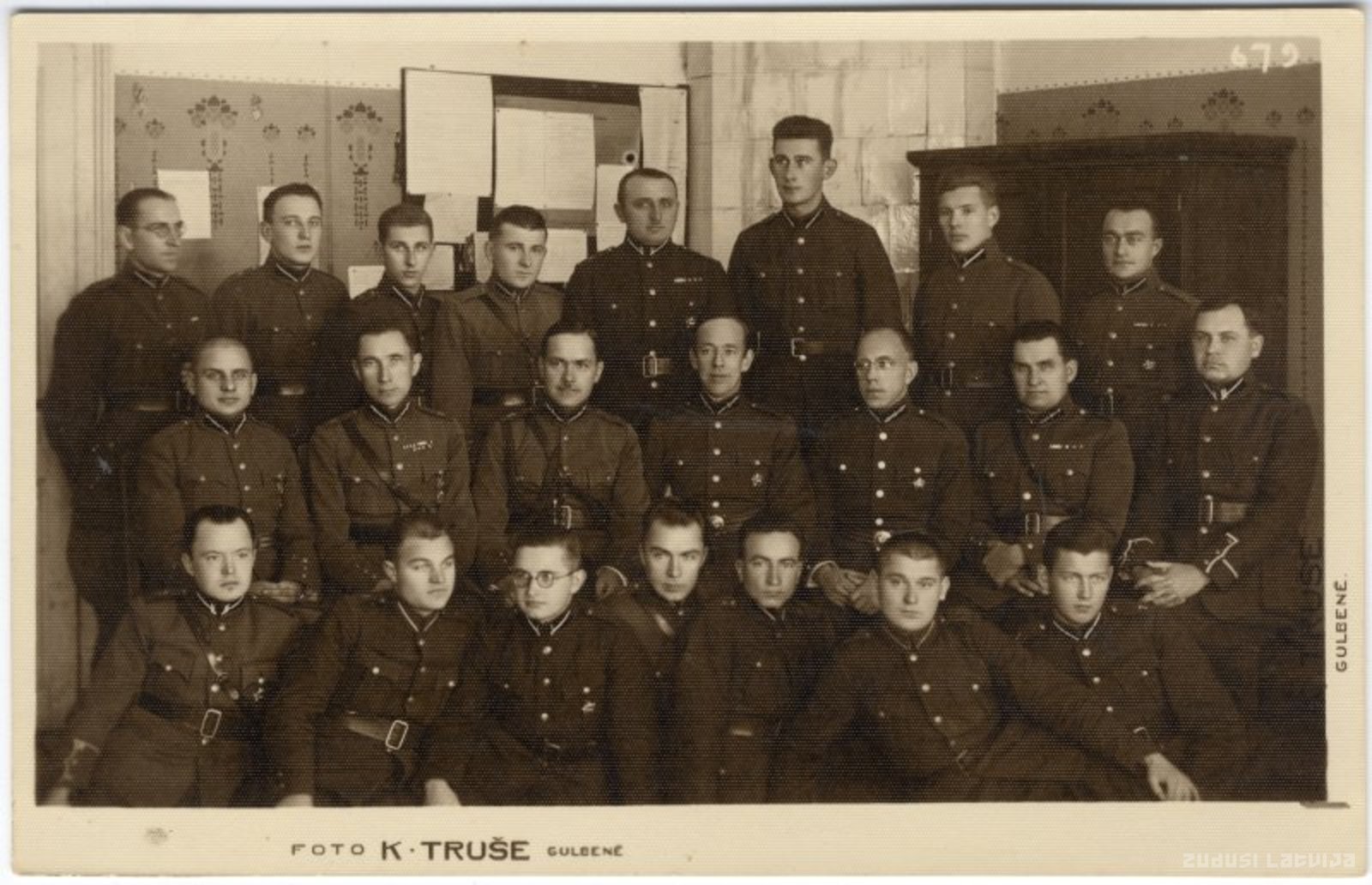 Otrajā rindā trešais no kreisās kapteinis Jēkabs Ķiploks, ceturtais no kreisās pulkvedis leitnants Jēkabs Pone
