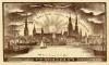 Rīga. Latvijas brīvvalsts galvas pilsēta. Skats no Dzegužu kalna. Lieli ceļi, mazi ceļi, vis’ uz Rīgu aiztecēja [attēls] / mākslinieks Ansis Cīrulis.