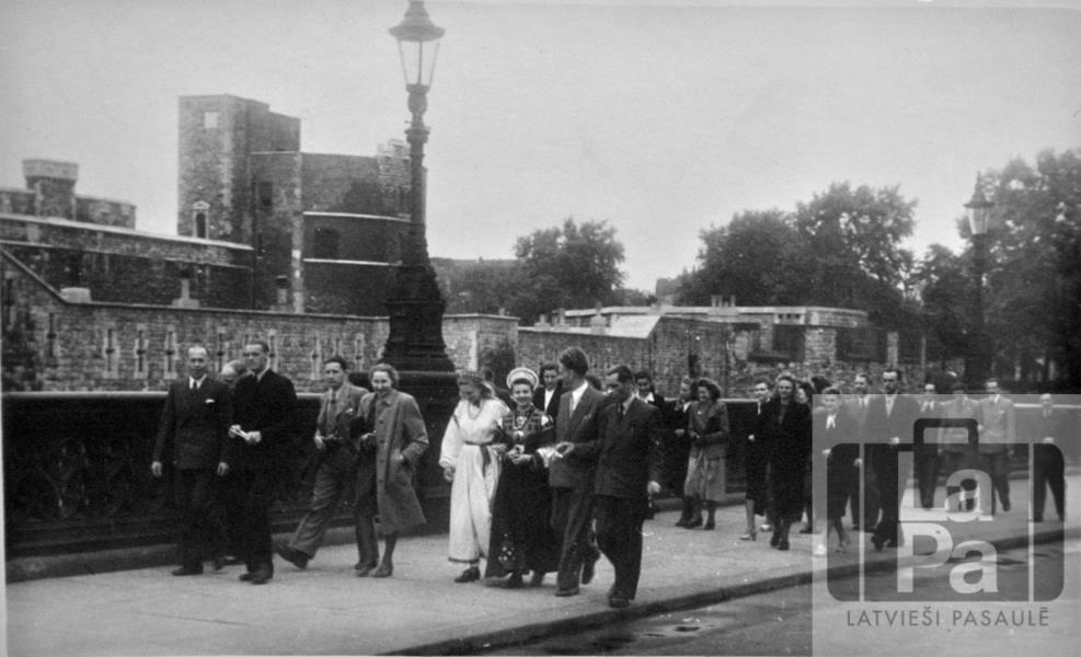 Latvieši pastaigā pa Londonu 20. gadsimta 50. gadu sākumā