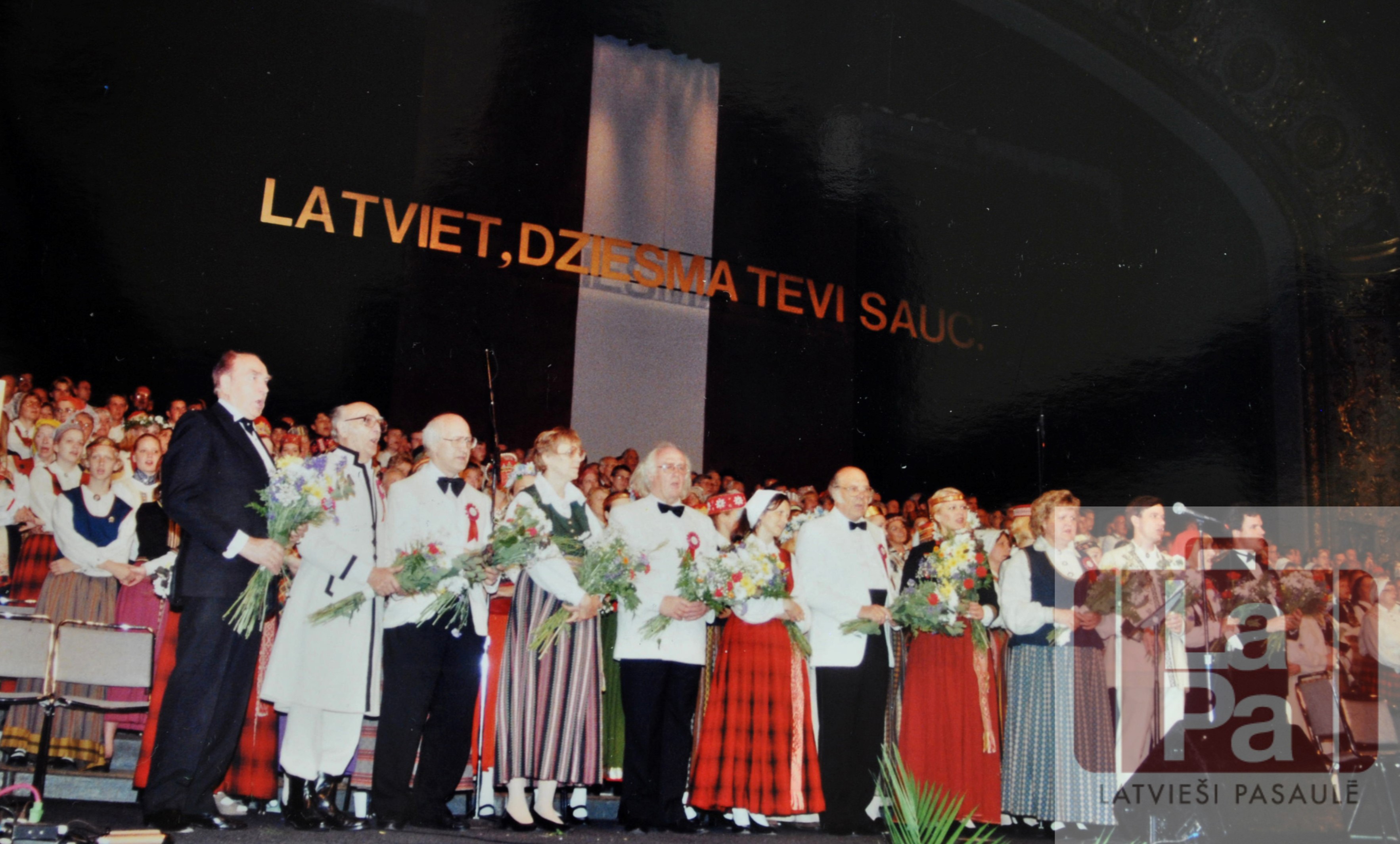 Kopkora koncerta solisti un diriģenti 10. Vispārējos latviešu Dziesmu svētkos Klīvlendā 1997. gadā.