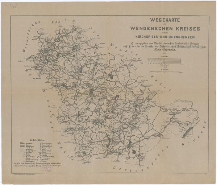 Wegekarte des Wendenschen Kreises mit den Kirchspiels- und Gutsgrenzen